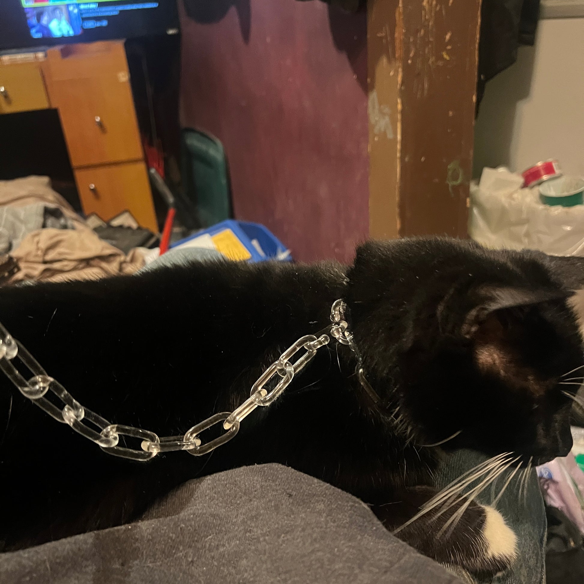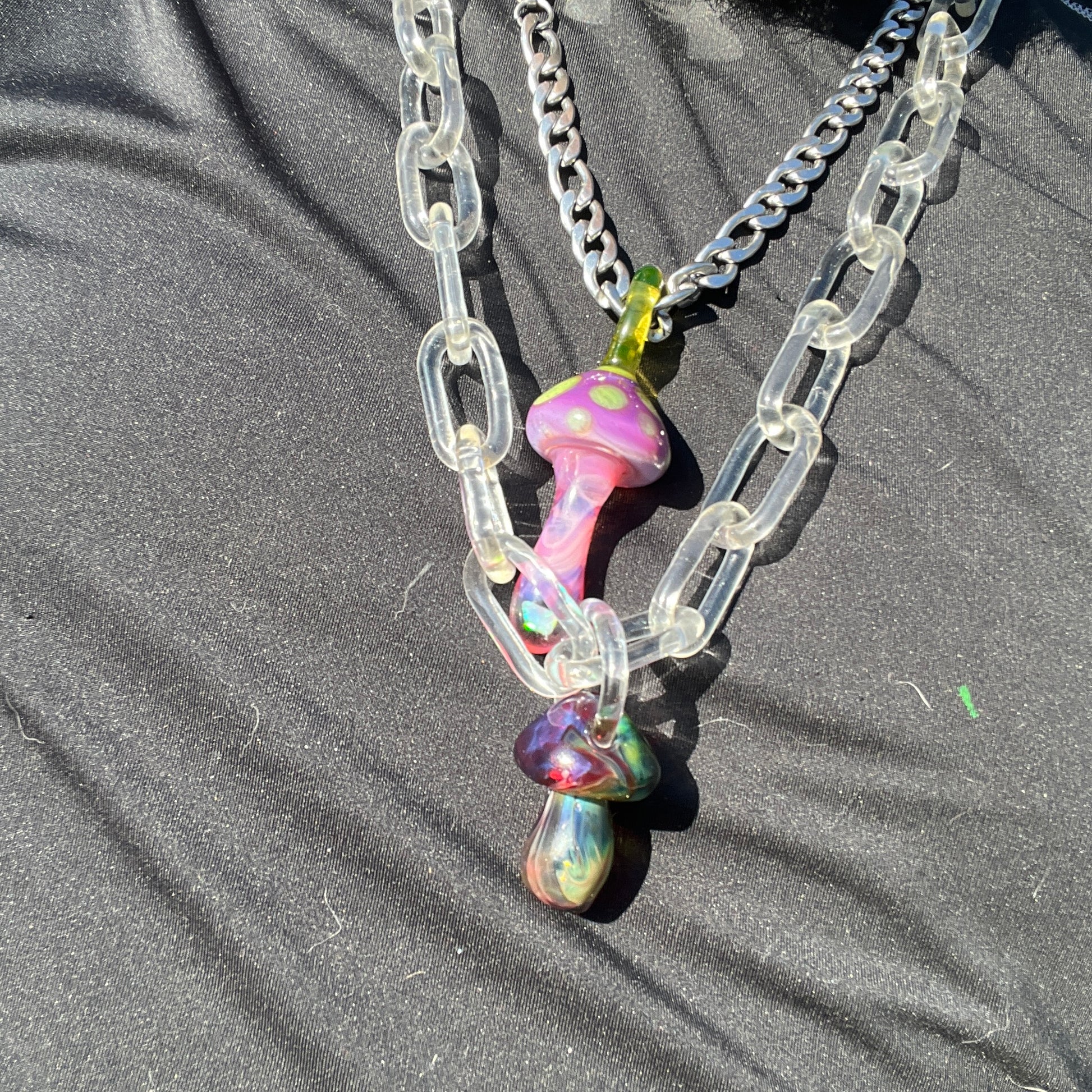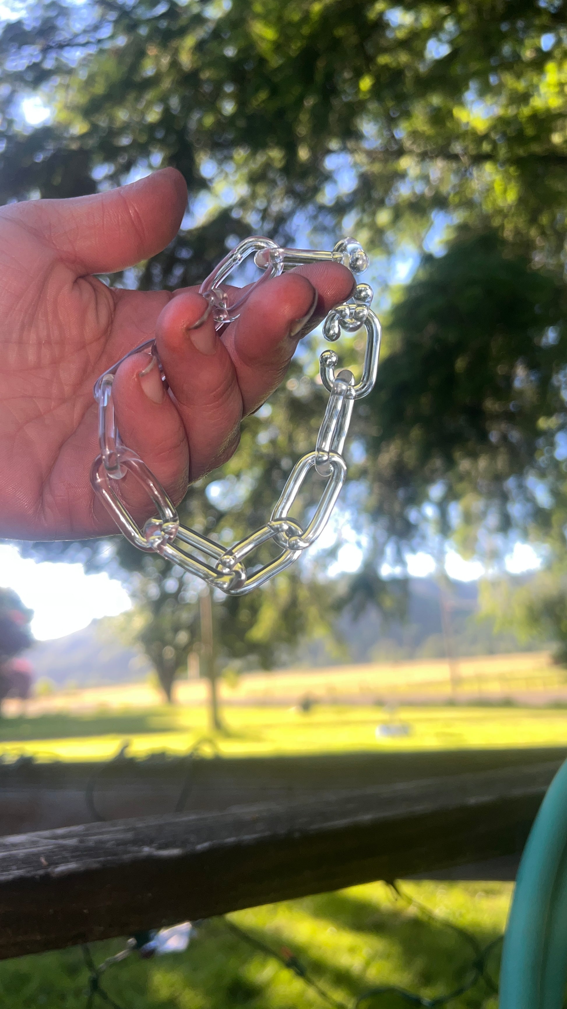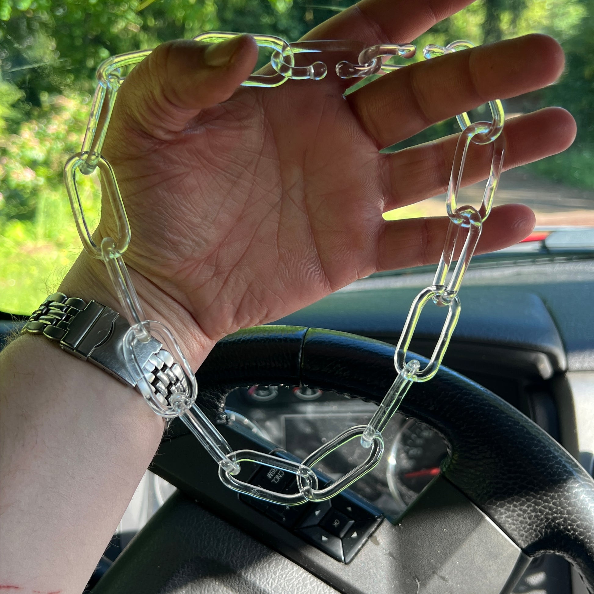 Custom glass chains for $5/link! Clear borosilicate glass chain made in 4mm links about an inch long and you can get any length you want for only $5 per link , clasp/connection links are the same size and price, if you prefer you can choose to not have connection links and the chain can be welded together so can only be taken on or off over the head. Multiple chains can link together if you choose so, you can have for example a bracelet and choker necklace that can also be a longer chain necklace with them connected. They also work great for pets to wear as a collar, and even a leash. Contact me for inquiries on other size links or colors if interested in something in a higher price range.